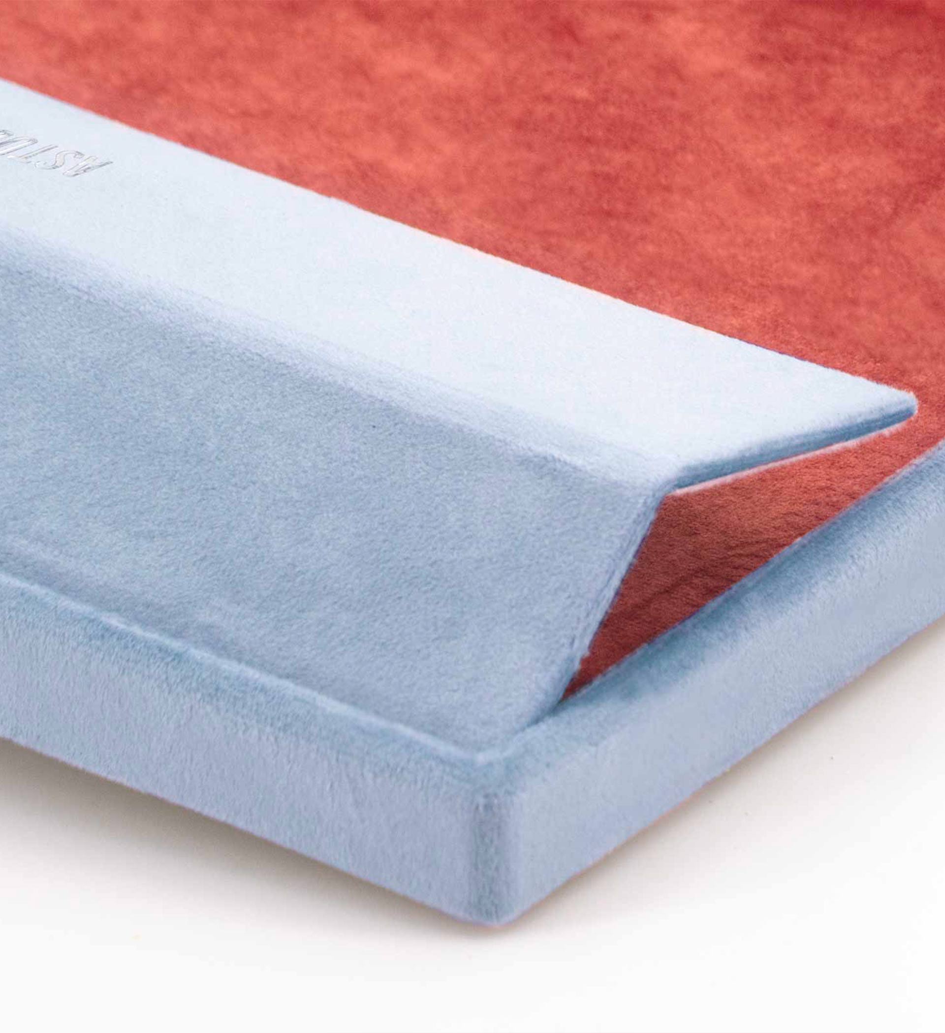 This glasses display is practical and customizable. The soft central part protects the glasses, while the end part allows you to fold the logo as you prefer.