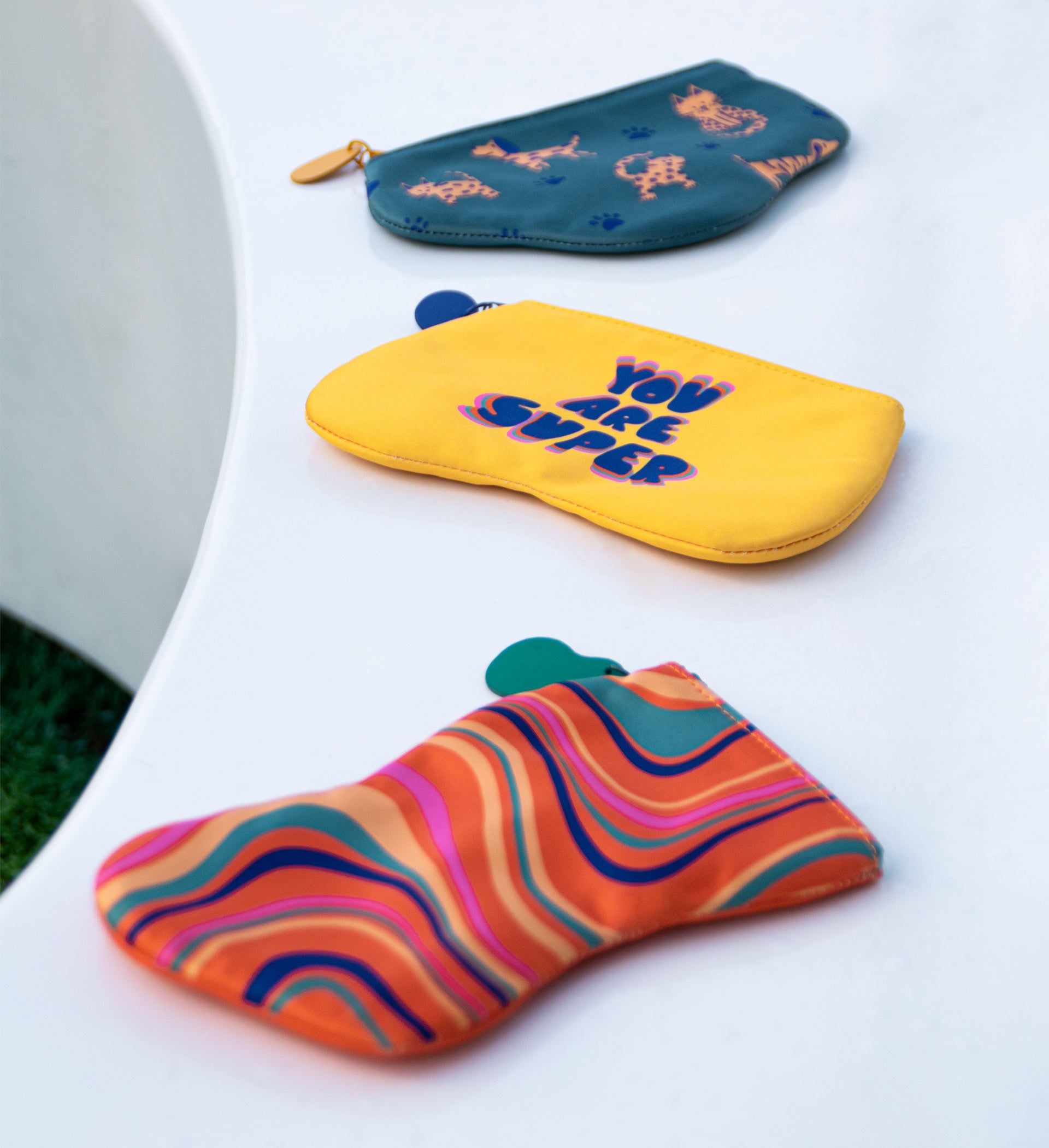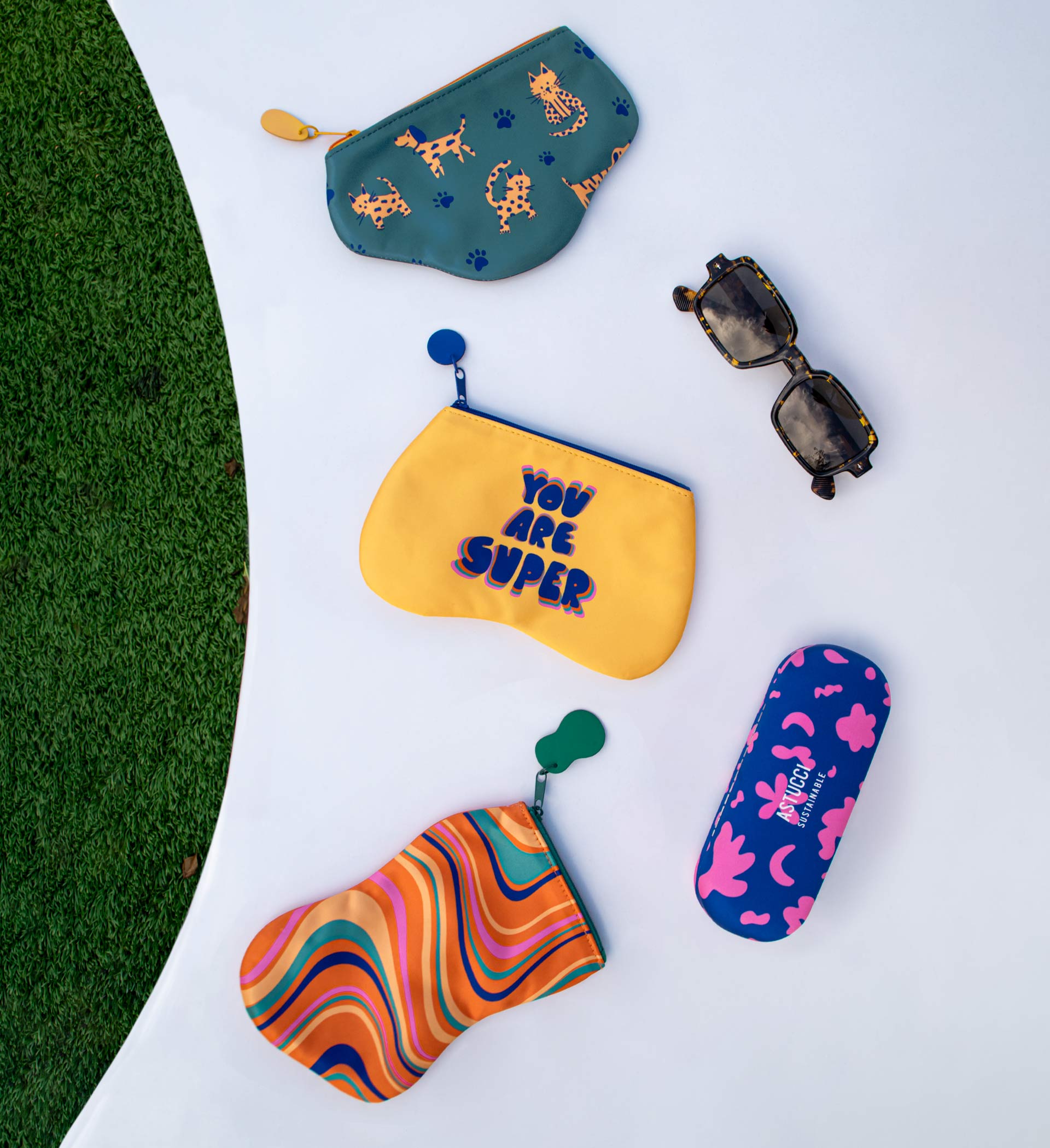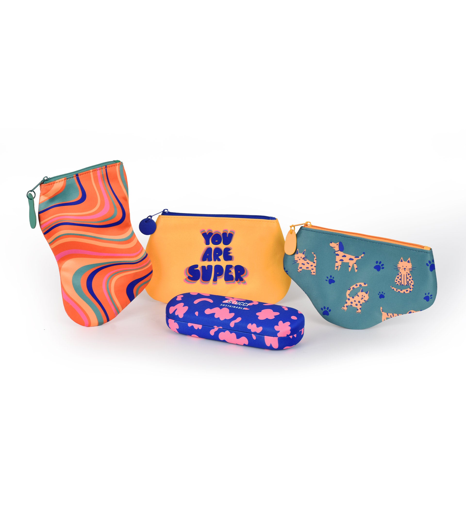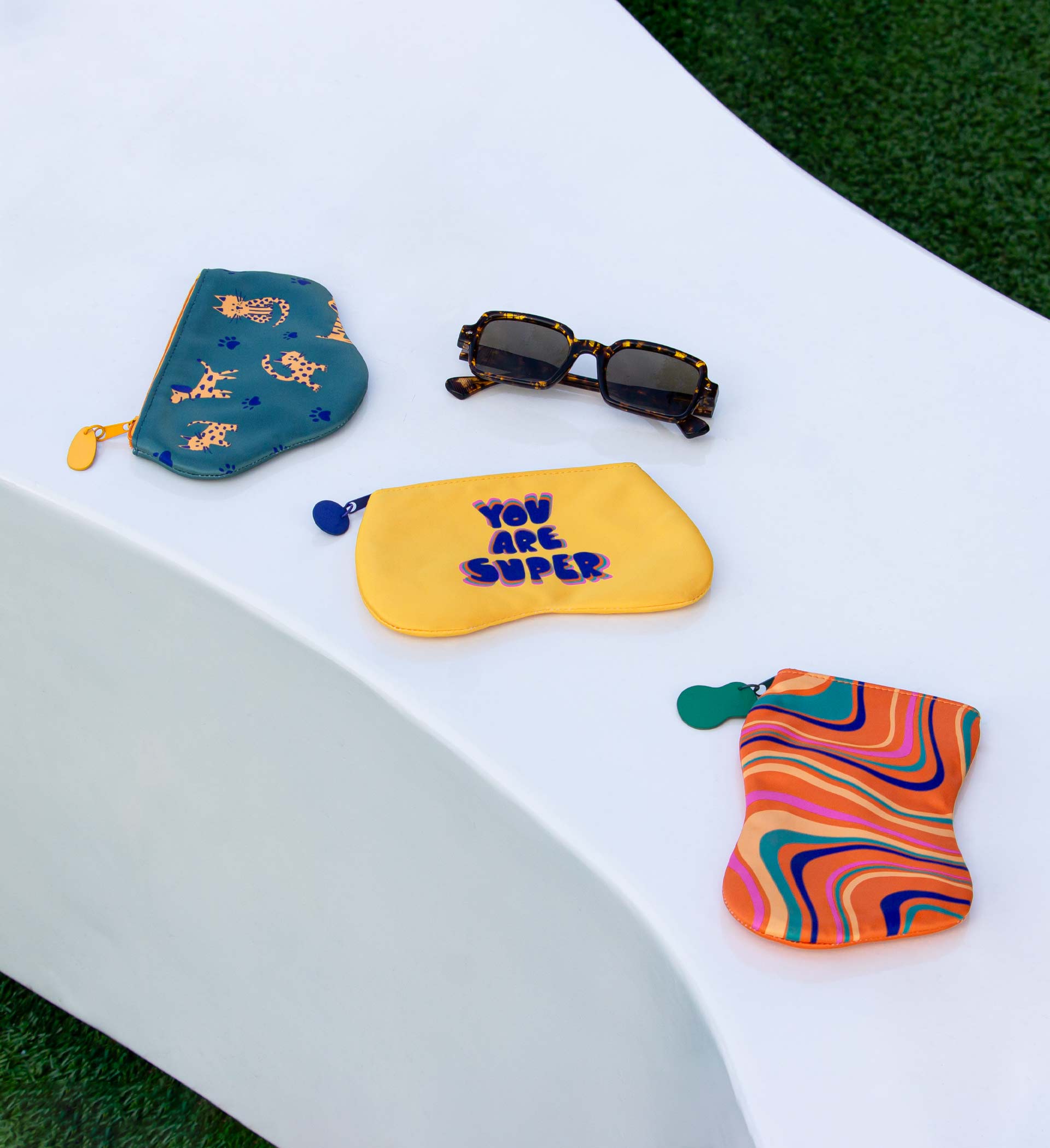 Add a splash of fun to your child’s eyewear with our colorful collection! Featuring four vibrant designs with bold, saturated colors and playful patterns, these zippered pouches are perfect for keeping glasses safe in style. The collection also includes a durable hard case in bright blue and pink, offering extra protection for everyday use. Perfect for school, trips, or any adventure!